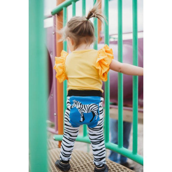 Our baby and toddler leggings, made from soft and stretchy knit material, are designed to keep up with little movers and shakers. Available in sizes 6M to 2T, they fit perfectly over both regular and cloth diapers for all-day comfort. Thanks to their stretchy fabric, sizing may vary slightly, but they’re made to grow with your little one. With an adorable design on the bum, these leggings are as cute as they are practical—perfect for playtime, nap time, or anytime!