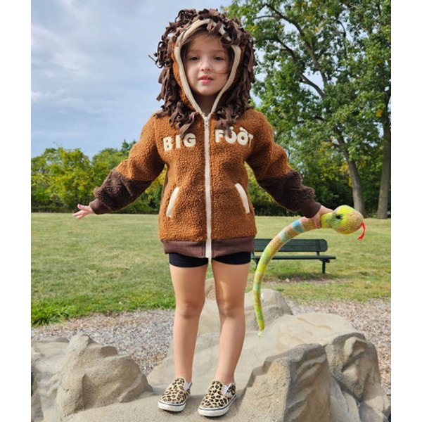 Wrap your little explorer in cuddly comfort with our Big Foot sherpa hoodie! Available in sizes 18M-5, this hoodie is full of personality, featuring an embroidered face with playful "hair" and the name "Big Foot" stitched proudly on the front. Cozy, cute, and ready for big adventures!