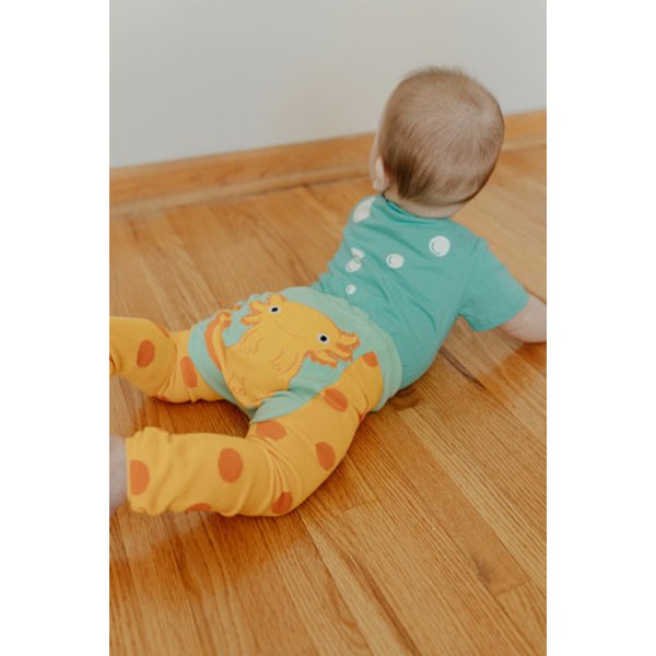 Our baby and toddler leggings, made from soft and stretchy knit material, are designed to keep up with little movers and shakers. Available in sizes 6M to 2T, they fit perfectly over both regular and cloth diapers for all-day comfort. Thanks to their stretchy fabric, sizing may vary slightly, but they’re made to grow with your little one. With an adorable design on the bum, these leggings are as cute as they are practical—perfect for playtime, nap time, or anytime!